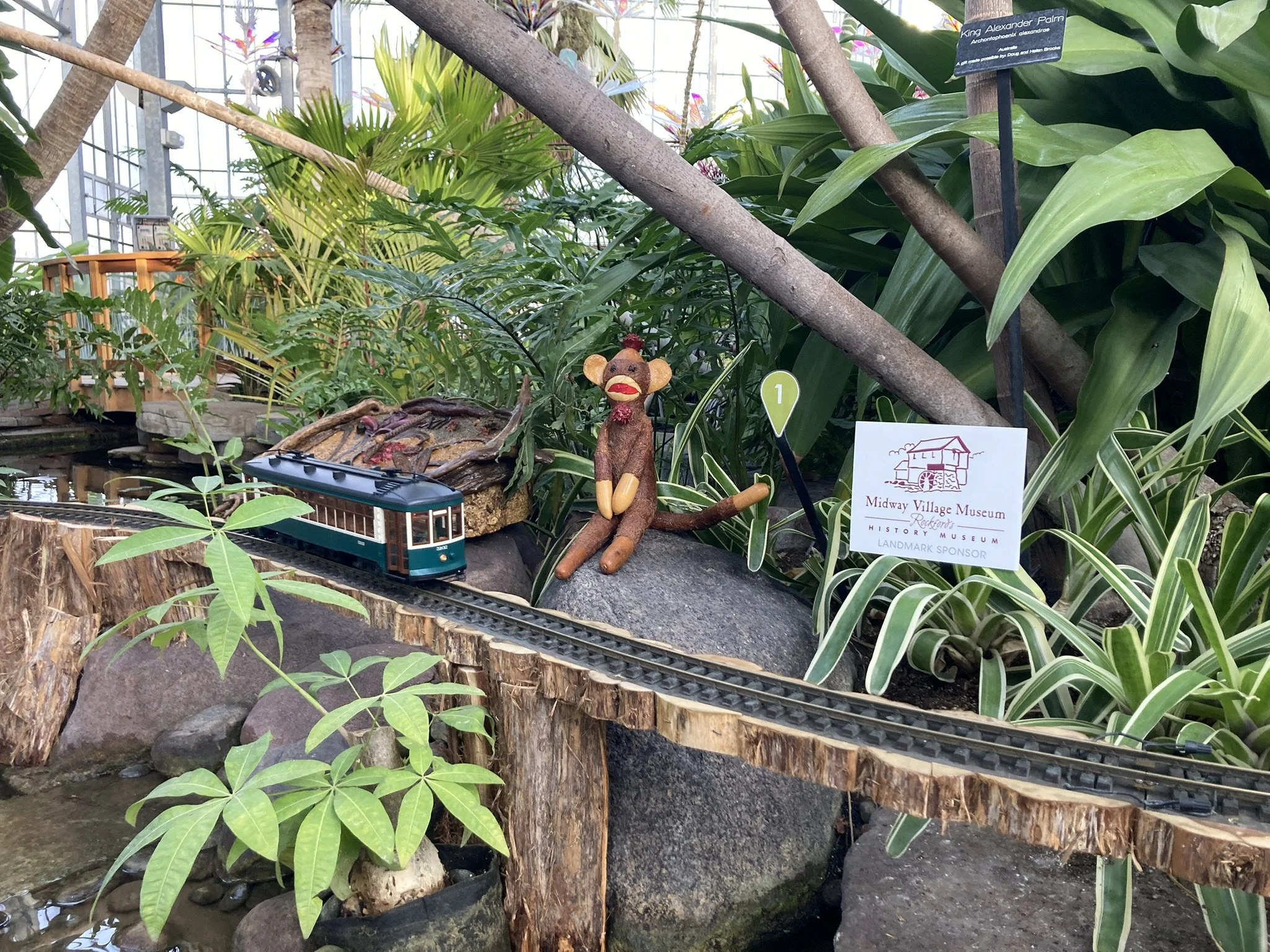 A variety of trains and trolleys run down, around, and above you—all in the lush, tropical setting of the Nicholas Conservatory.